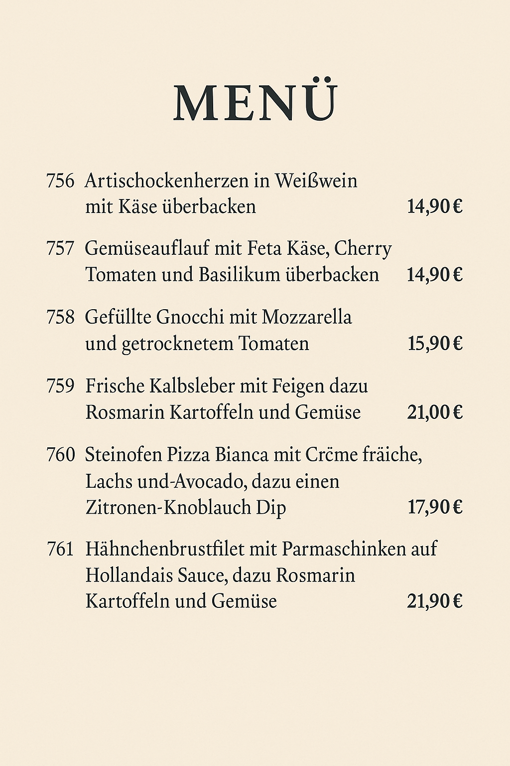 Und nun wünschen wir Ihnen beim Studieren dieser Karte recht viel Freude und – sofern Sie etwas Passendes für Ihren Gaumen gefunden haben – einen guten Appetit.